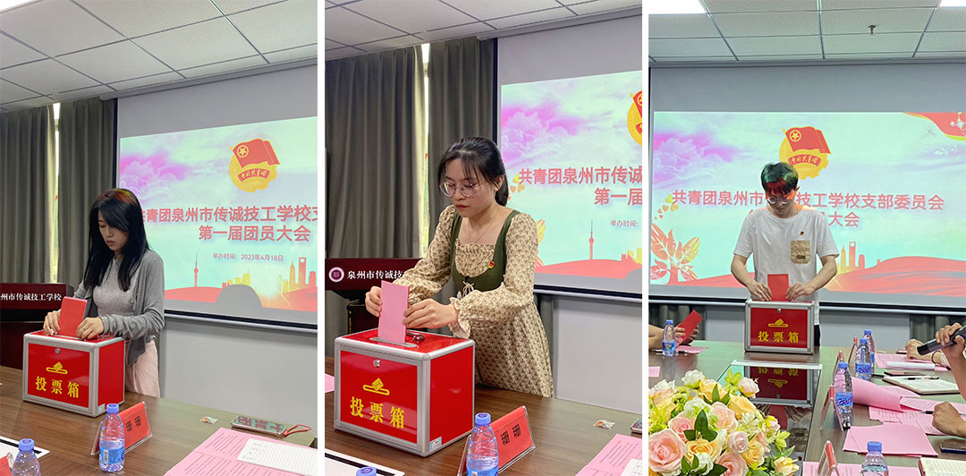 大会上宣读了镇团委《关于成立泉州市传诚技工学校团支部的批复》、《关于召开泉州市传诚技工学校团支部第一次团员大会的批复》等文件,并经全体团员举手表决通过了《选举办法》。