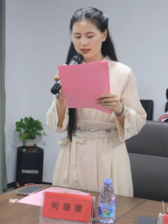 新当选支部书记何珊珊同志上台发言。她表示一要加强学习,做服务型团干;二要加强履职,抓好团组织自身建设;三要加强沟通,做团员青年的贴心人。